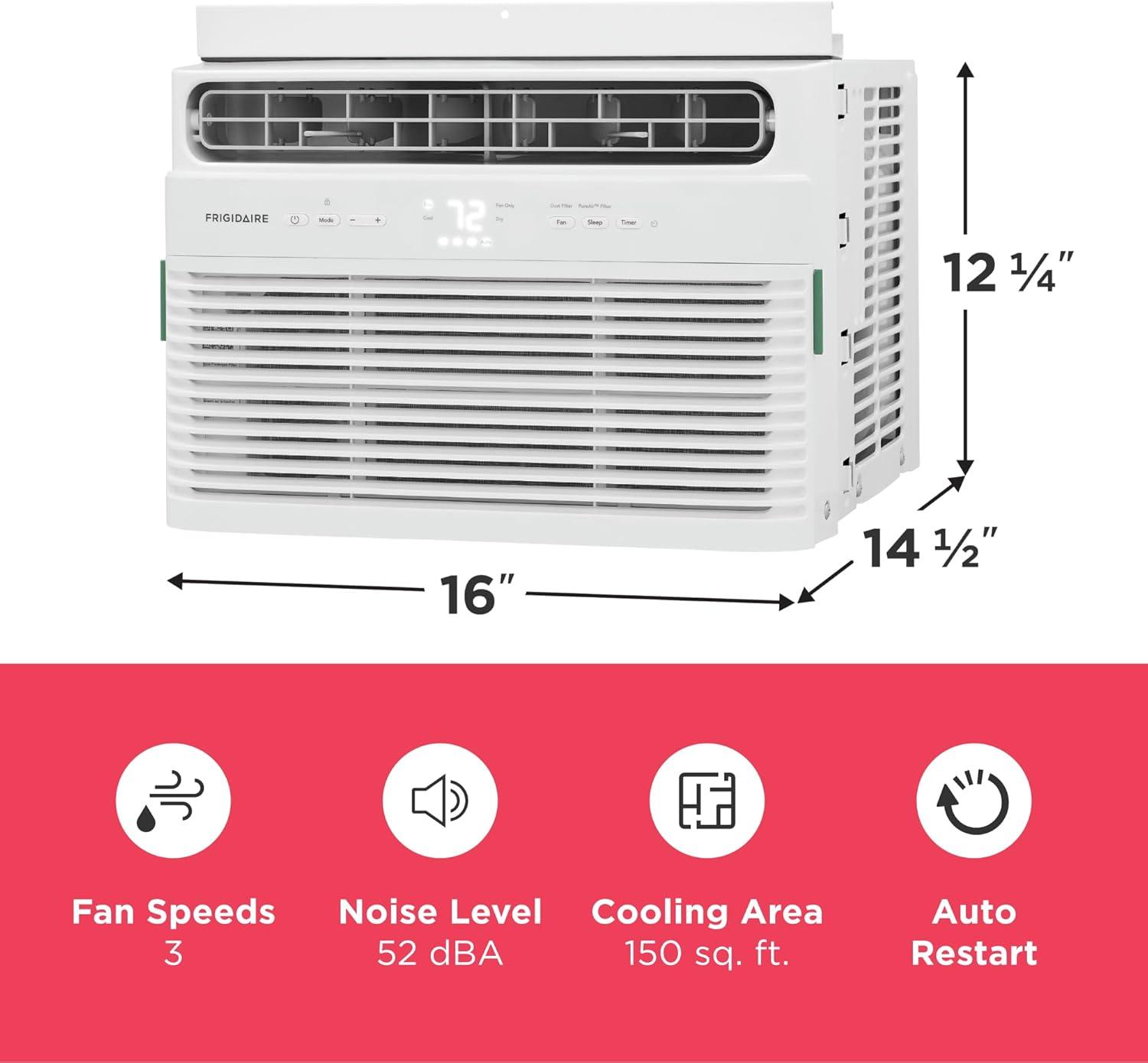 Frigidaire 5,000 BTU Window-Mounted Air Conditioner, Cools Up to 150 Sq. Ft., Quiet Operation, Effortless Temperature Control, 2 Fan Speeds, Auto Restart, White(5 000 BTU Electronic Controls)
