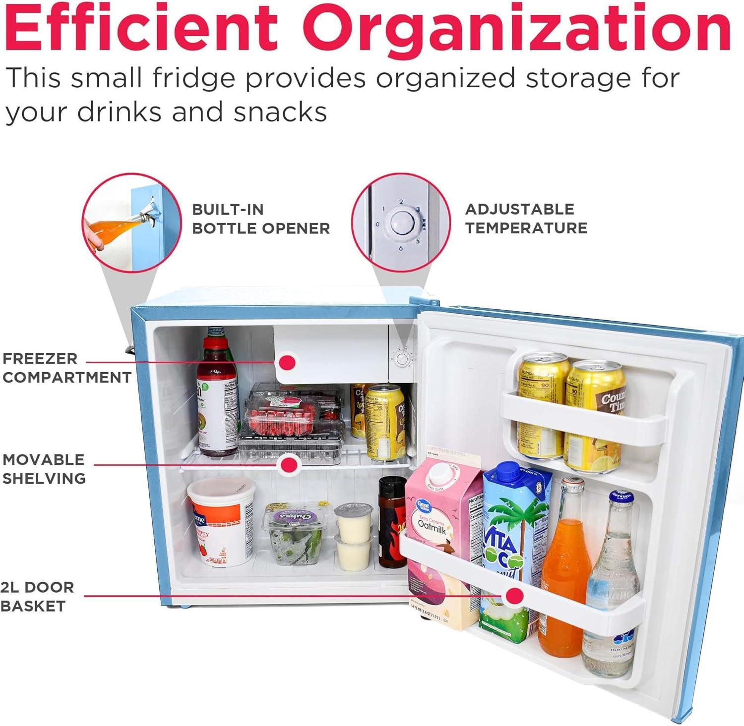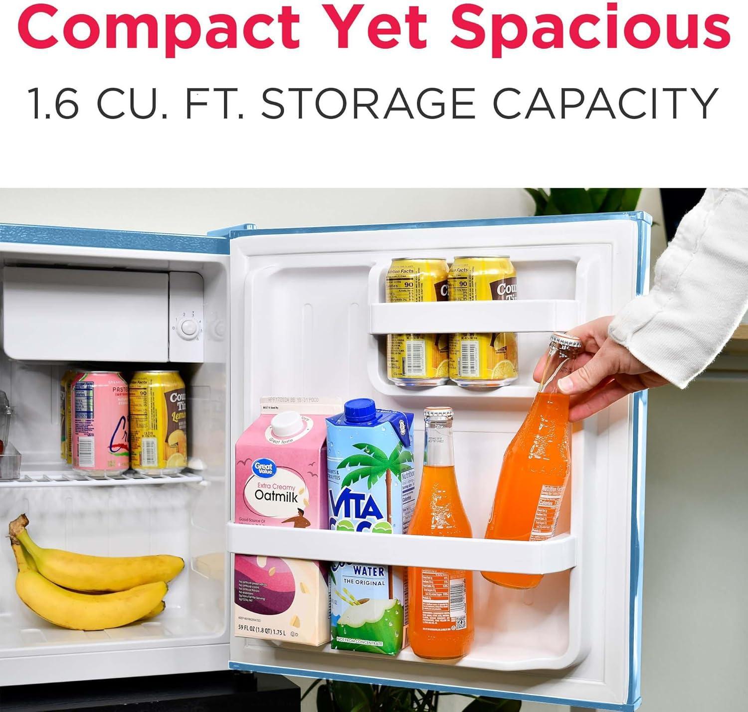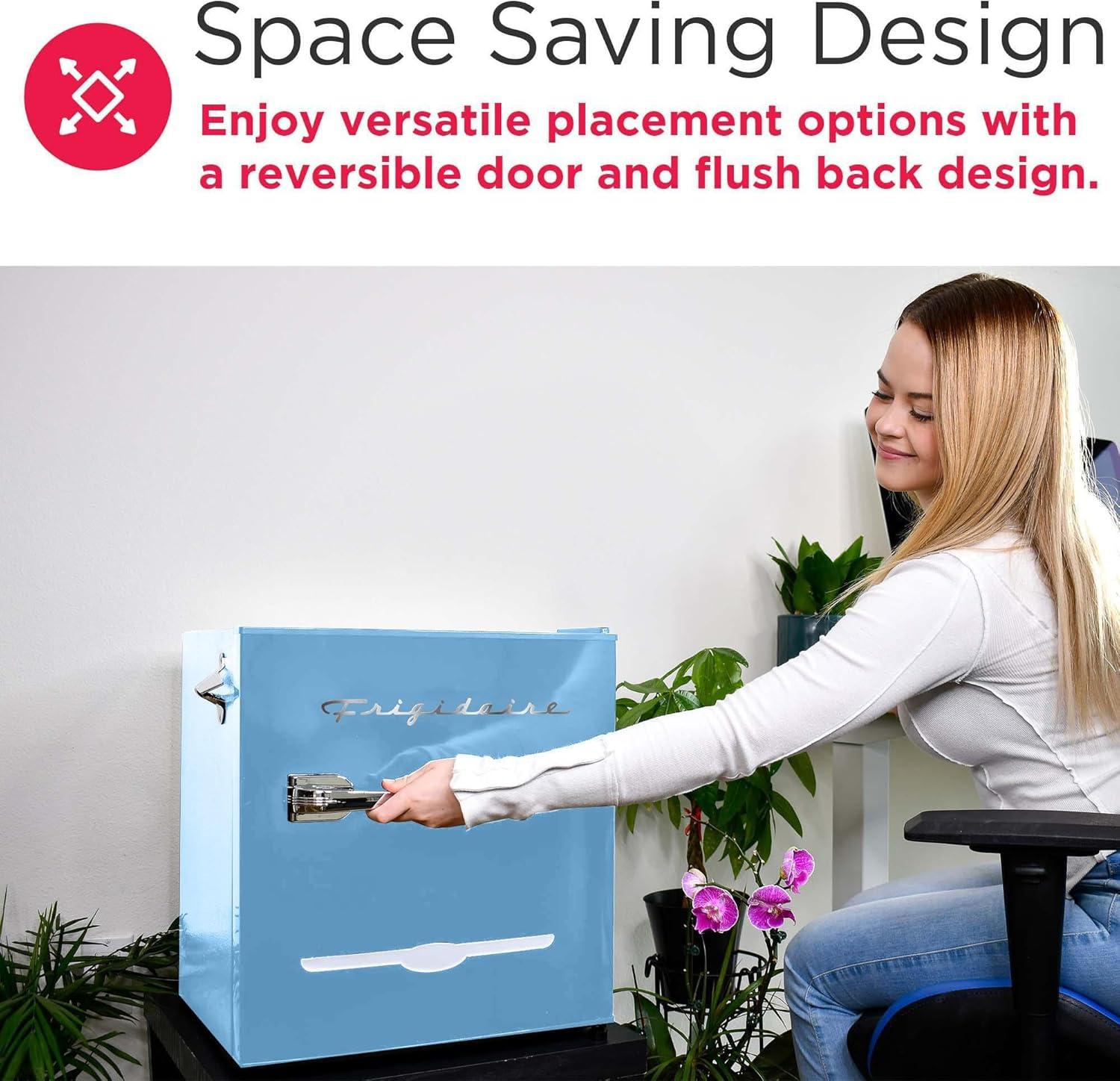 Frigidaire Coral EFR176- AMZ EFR176 Retro Mini Refrigerator-Energy Saving-Adjustable Thermostat Control-Side Mounted Bottle Opener-Ideal for for Dorm, Office, RV, Garage, Apartment 1.6 Cubic Feet(Blue)