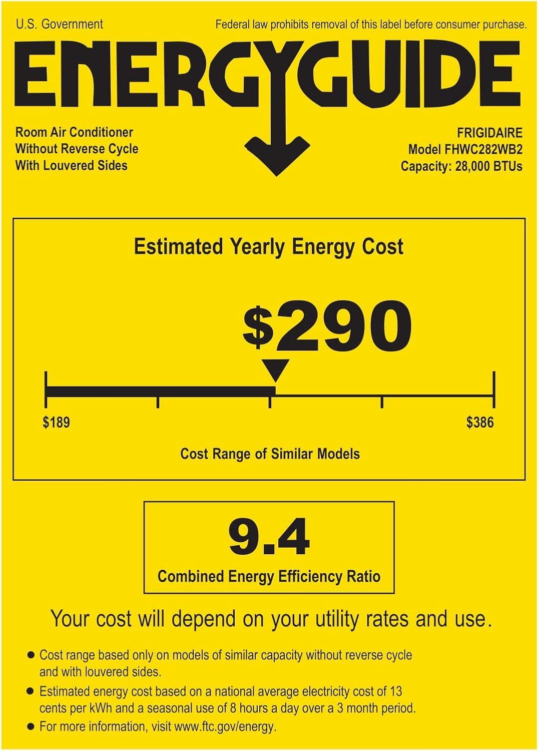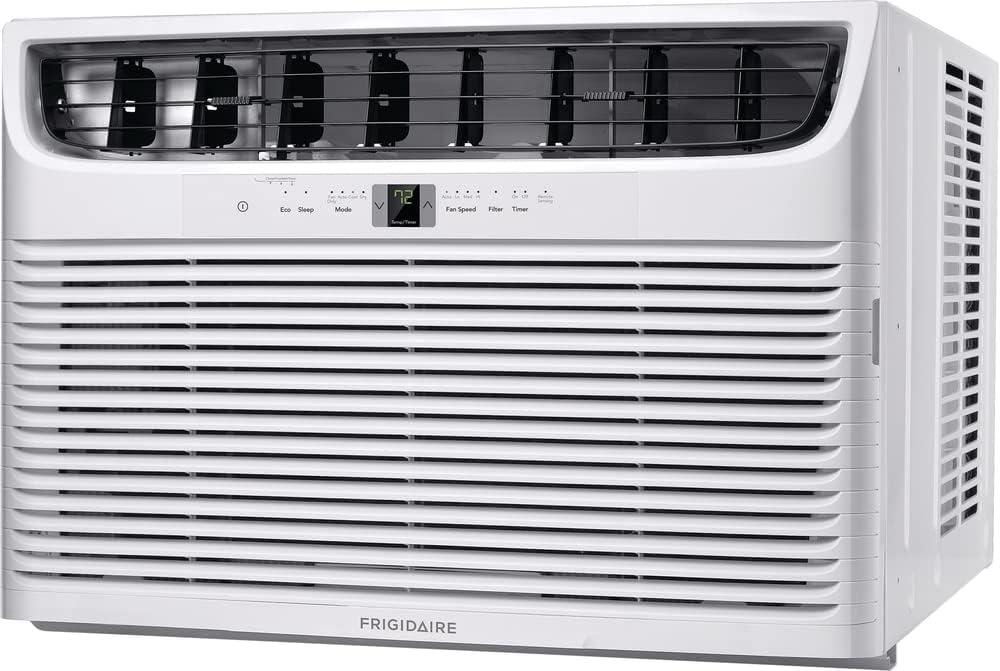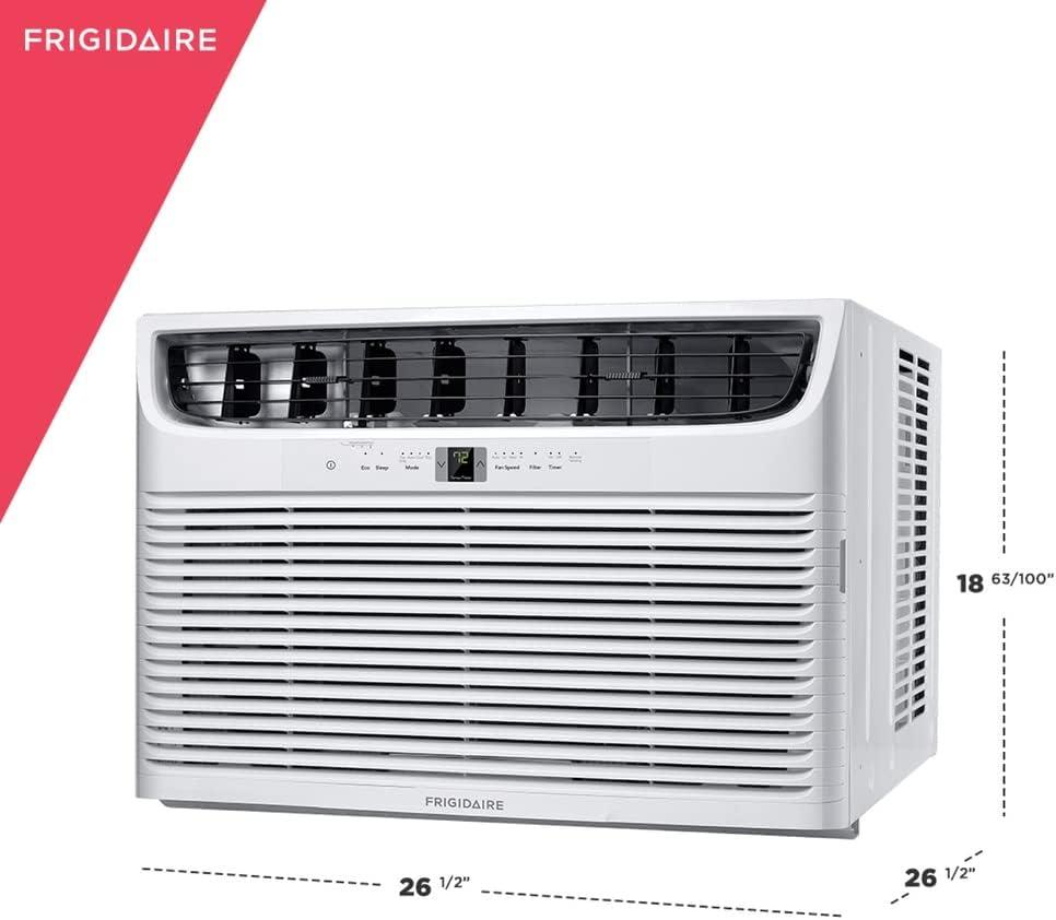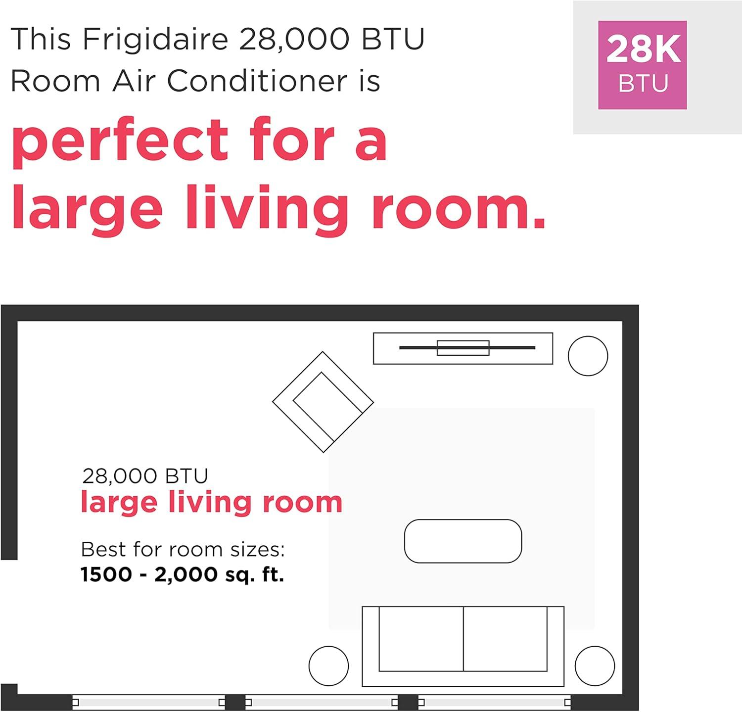 The Frigidaire 28,000 BTU window air conditioner keeps your room cool and comfortable with optimum circulation thanks to multi-directional airflow and three fan speeds. Easily install this air conditioner; this unit distributes the weight into two pieces using a slide-out chassis. Capture dust from the air and keep your air conditioner working efficiently with our easy-to-clean washable filter. Compatible with our mounting bracket (B0872ZJCB9) and side panel (B0872Y4MCL).