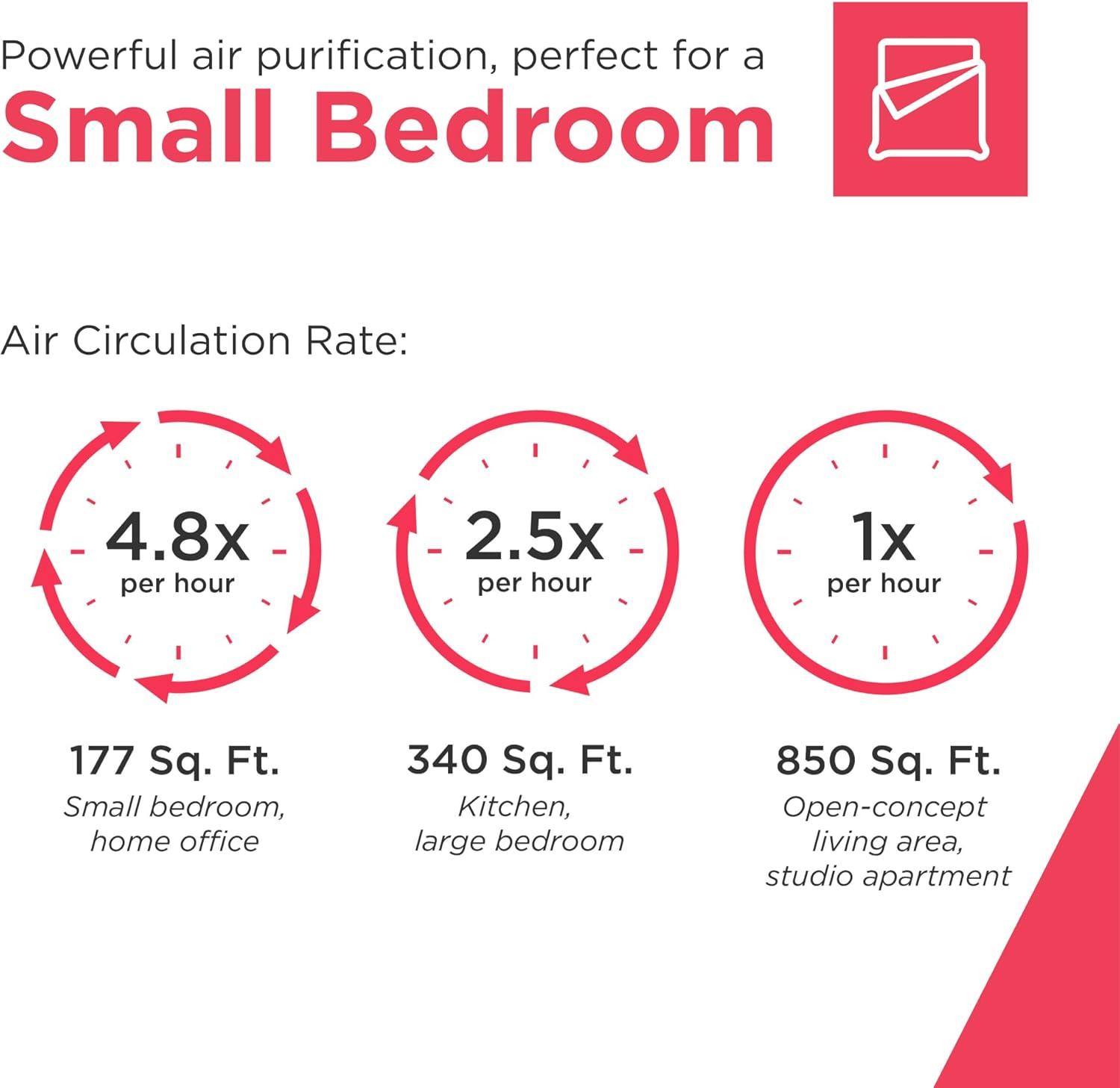 Continuous Air Circulation: This air purifier filters the air 4.8x per hour in rooms up to 351 sq. ft. or 1x per hour in rooms up to 1,685 sq. ft., ensuring consistent air quality and freshness*