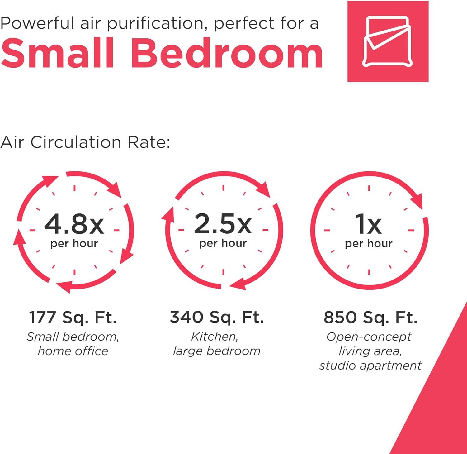 Continuous Air Circulation: This air purifier filters the air 4.8x per hour in rooms up to 351 sq. ft. or 1x per hour in rooms up to 1,685 sq. ft., ensuring consistent air quality and freshness*
