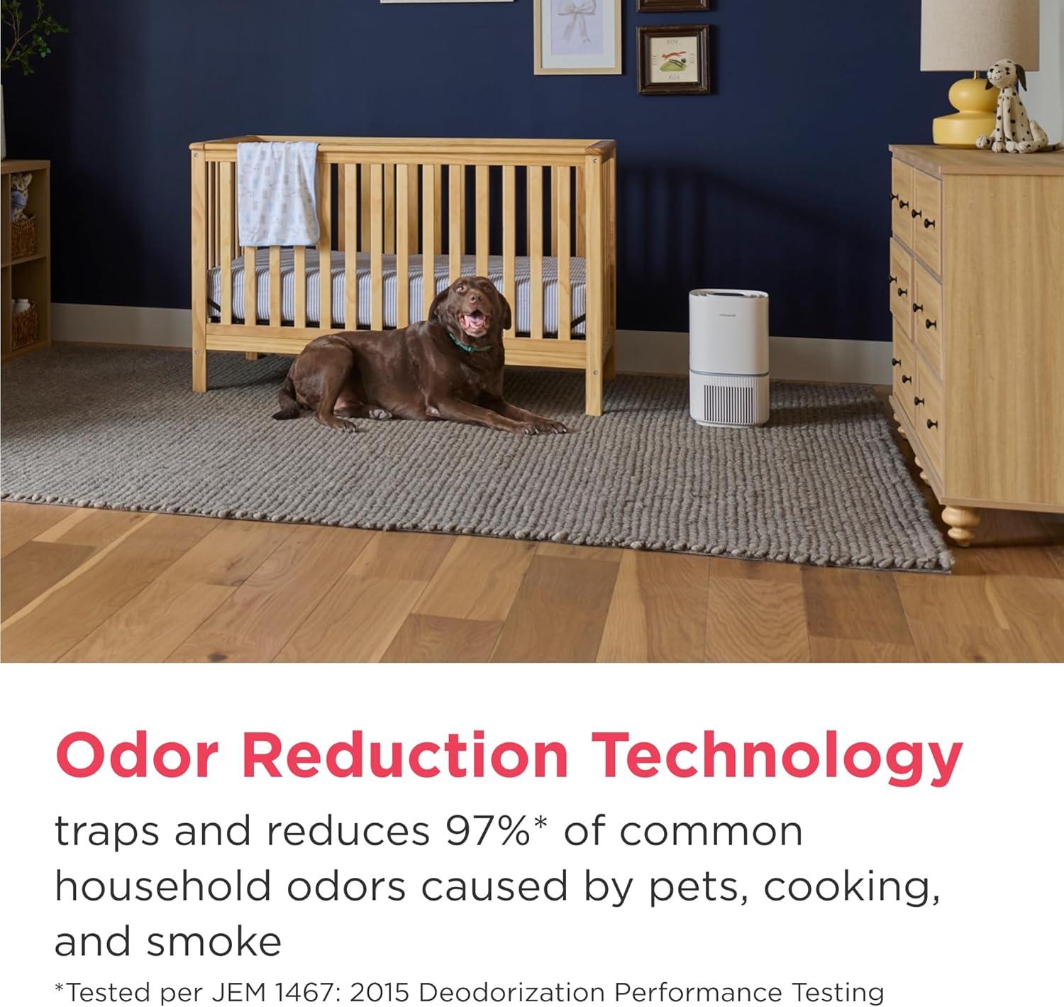 Quiet Operation & Odor Reduction: Operating quietly at just 20 dBA* to maintain a peaceful home environment, this purifier traps and reduces 97%** of common household odors from pets, cooking, and smoke